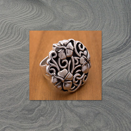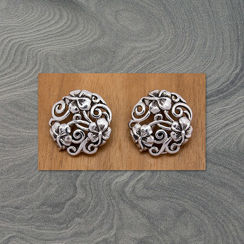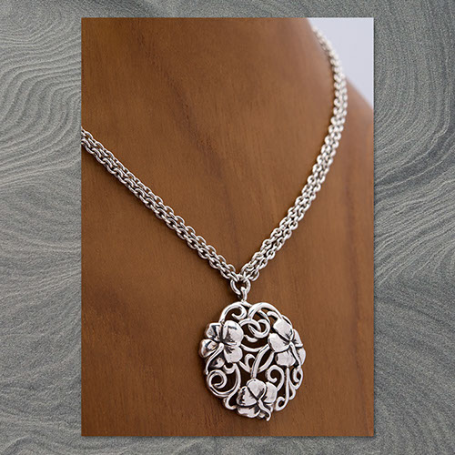 39 mm large round carved flower pendant with 16" double chain necklace sterling silver