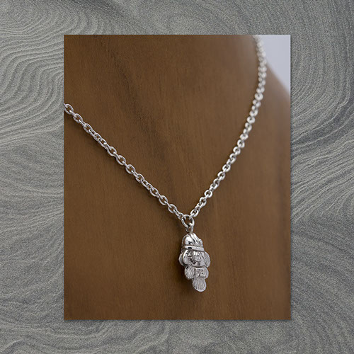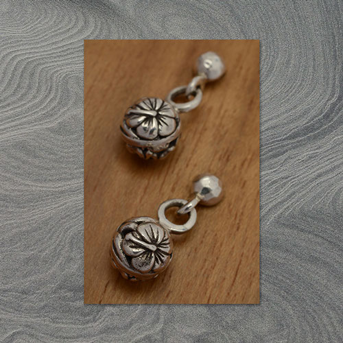 28 mm med round carved flower pendant with 16" double chain necklace sterling silver