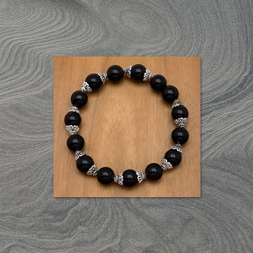8 mm black onyx with carved bands