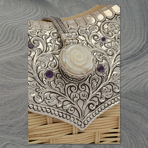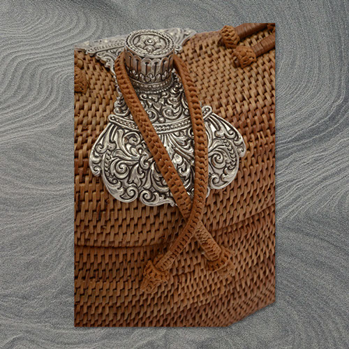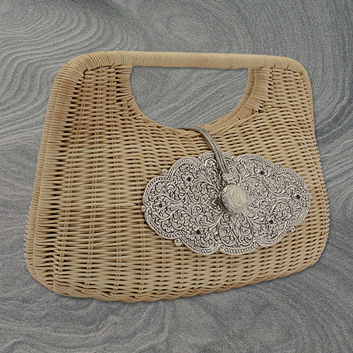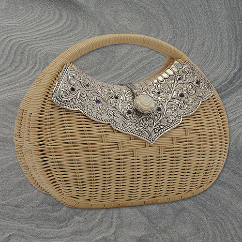 hand woven rattan basket purse cotton lined hand carved sterling silver