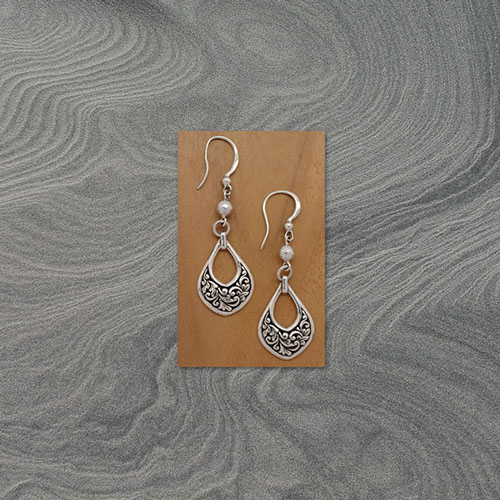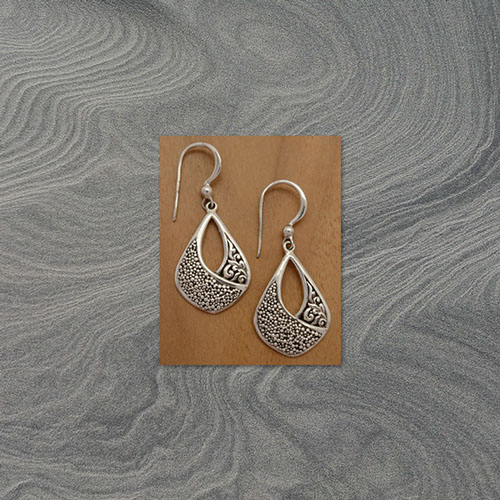 38 mm total drop length overlap mixed texture granulated top earring sterling silver