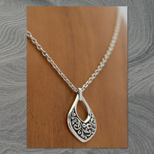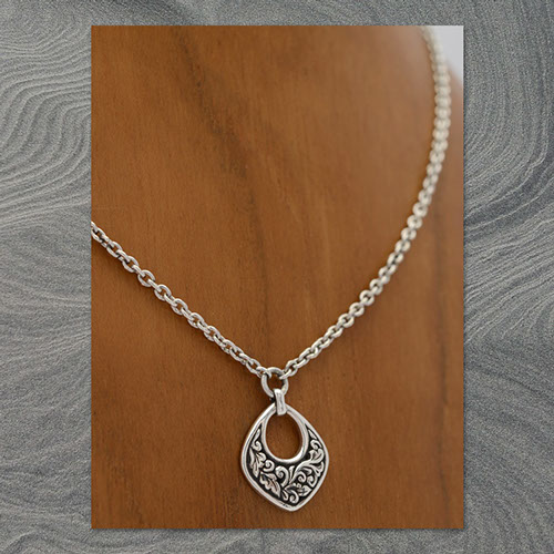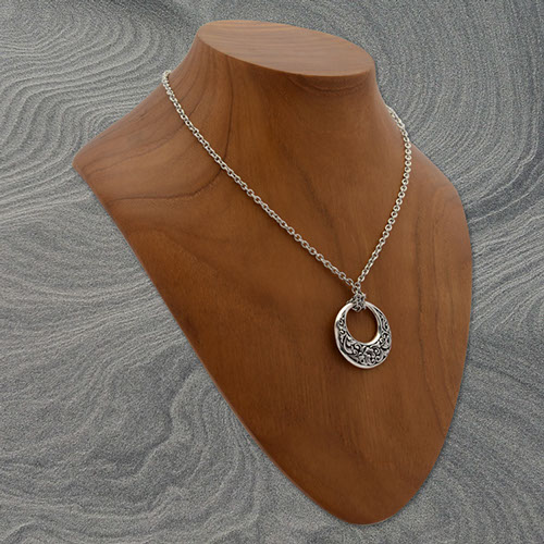 35 mm pendant medium drop overlap mixed texture 16" necklace sterling silver