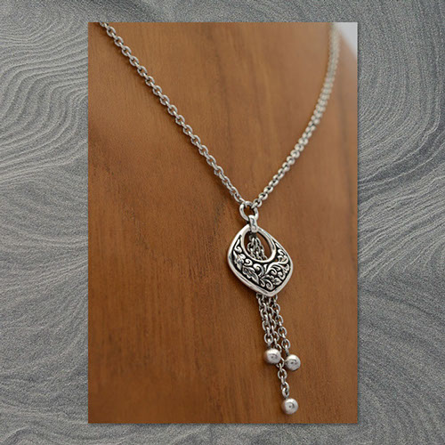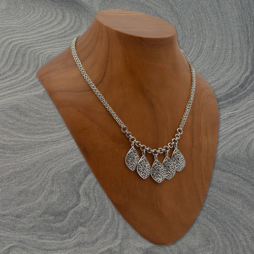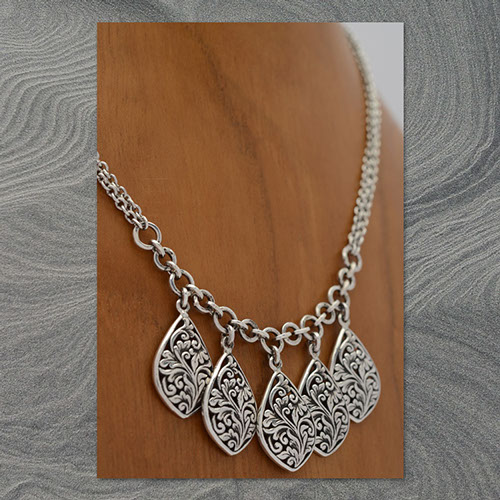 30 mm pendant drop 5 carved medium drop with double chain 16" necklace sterling silver