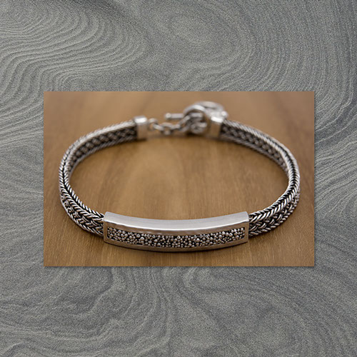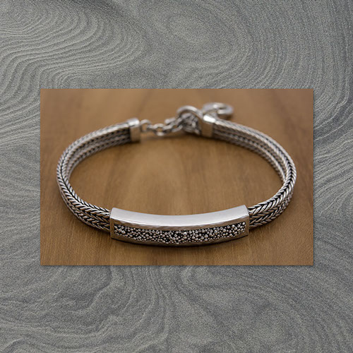 3 mm skinny cuff bracelet with small oval ID sterling silver