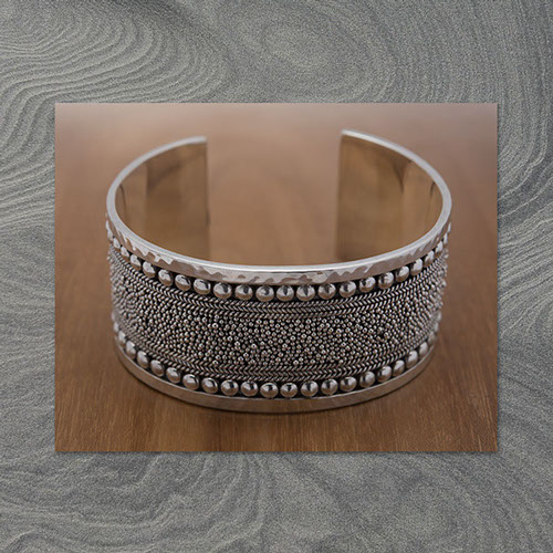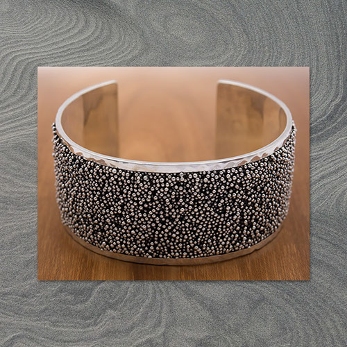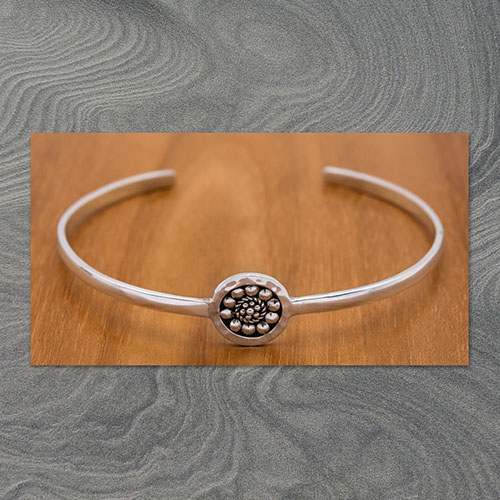 3 mm skinny cuff bracelet with small round ID sterling silver