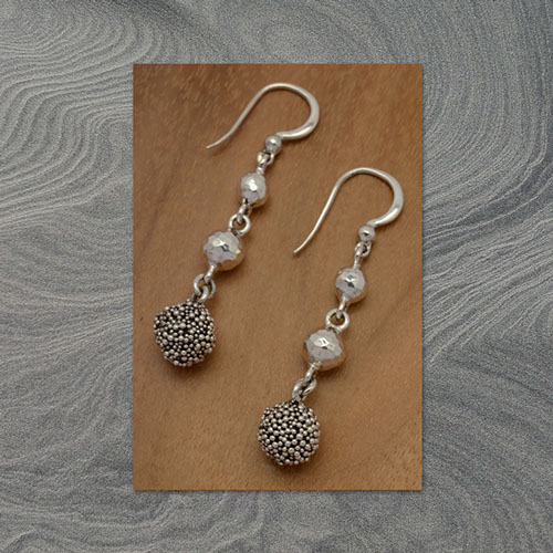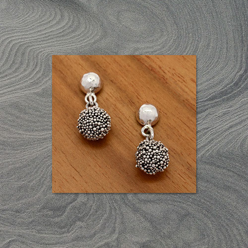 50 mm total drop length of 7 and 9 mm balls earring sterling silver