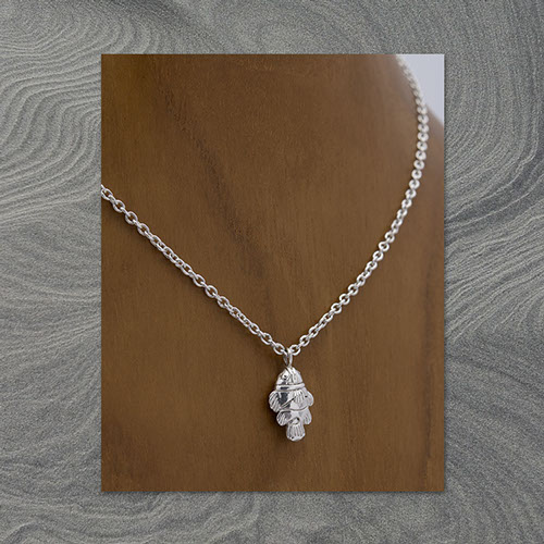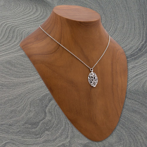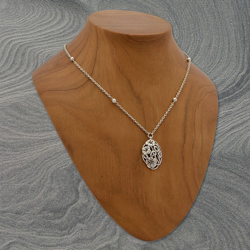 28 mm med round carved flower pendant with 16" double chain necklace sterling silver