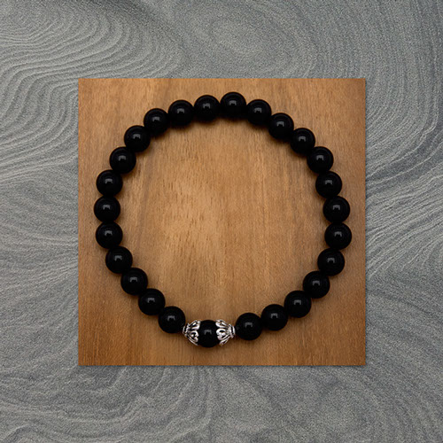 8 mm black onyx with carved bands