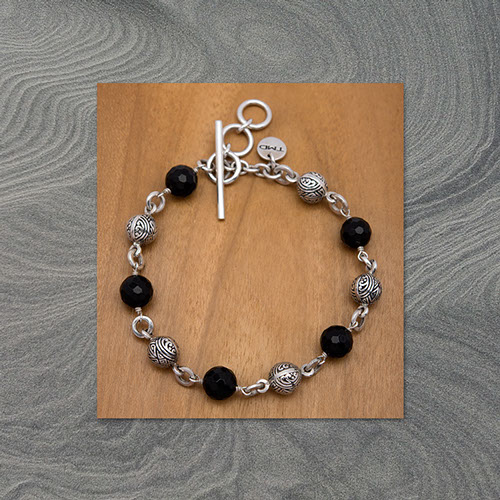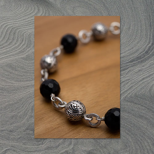 8 mm black onyx mixed with carved balls sterling silver beads bracelet