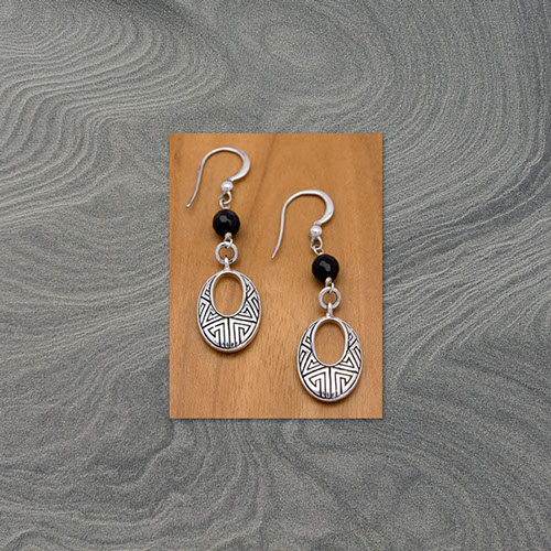 50 mm total drop length open oval drop with faceted black onyx earring sterling silver