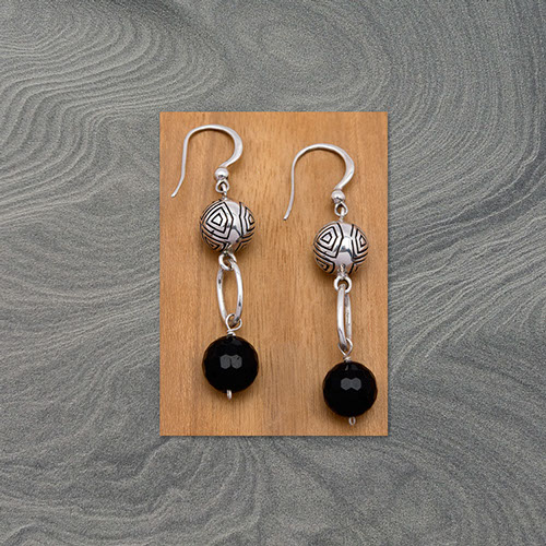 50 mm total drop length 10 mm ball with faceted black onyx earring sterling silver