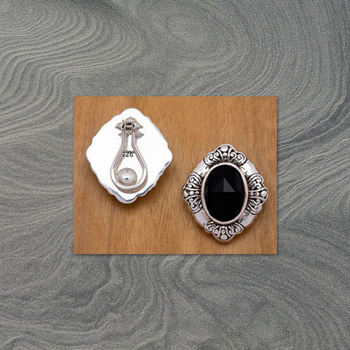 20 X 23 mm oval black onyx clip earring sterling silver