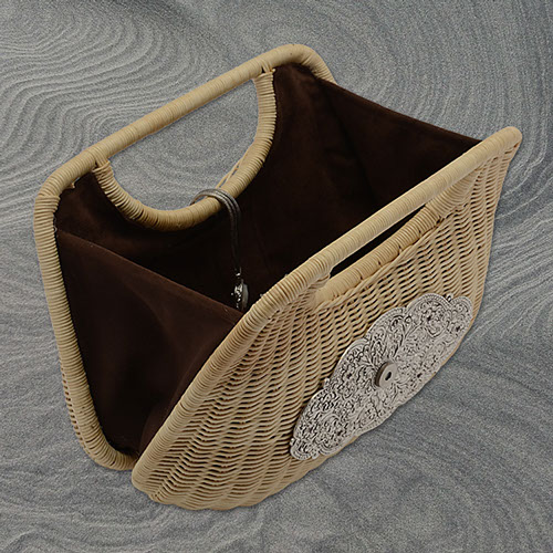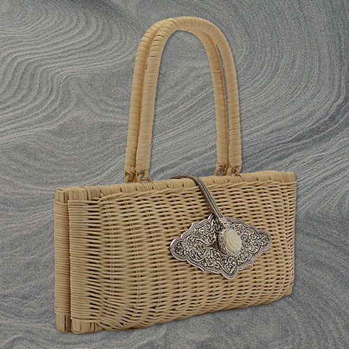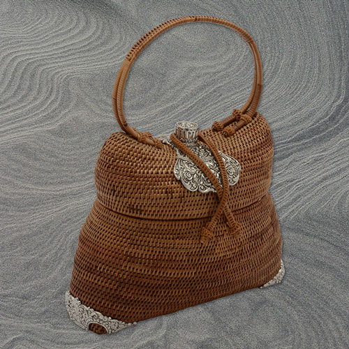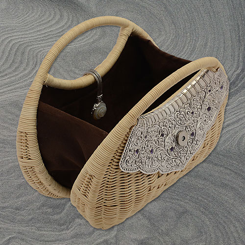 hand woven rattan basket purse cotton lined hand carved sterling silver
