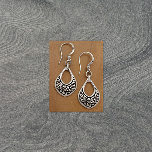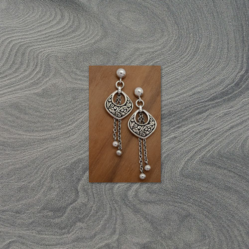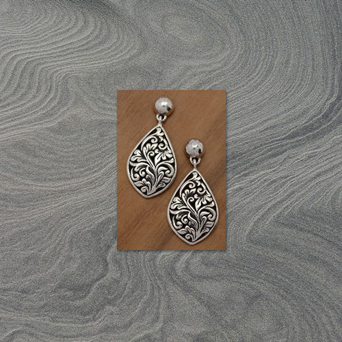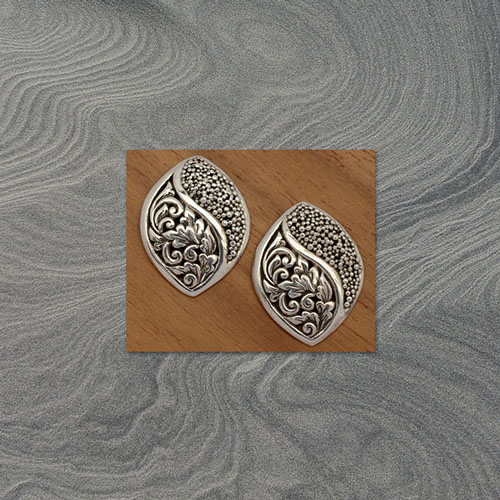38 mm total drop length overlap mixed texture granulated top earring sterling silver
