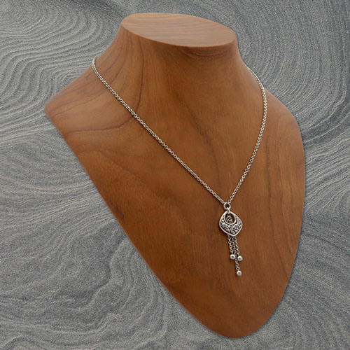 30 mm pendant drop 5 carved medium drop with double chain 16" necklace sterling silver