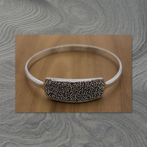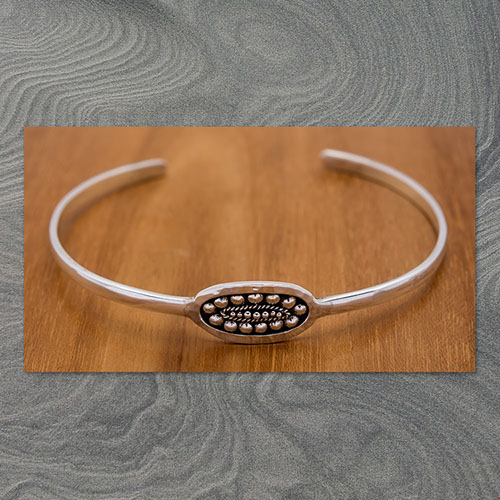 3 mm skinny cuff bracelet with small oval ID sterling silver