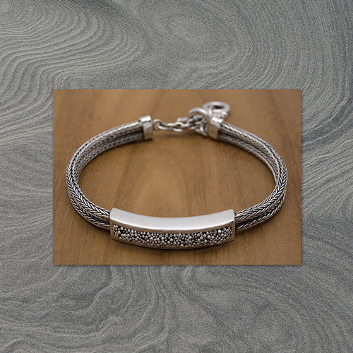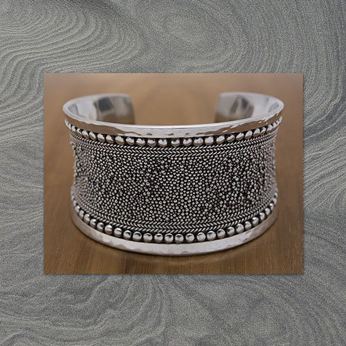 3 mm skinny cuff bracelet with small round ID sterling silver