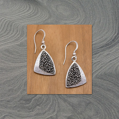 38 mm total drop length irregular triangle earring with fish hook sterling silver